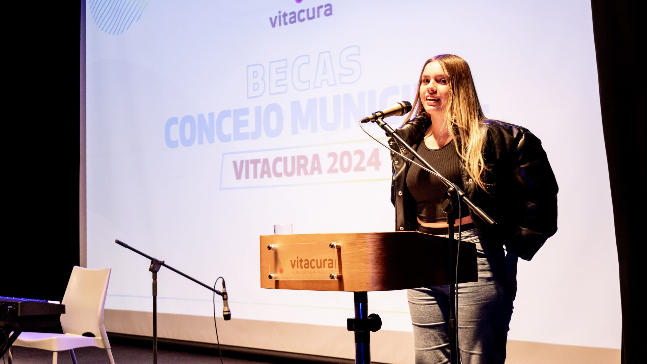 Durante la ceremonia, María Belén Ballivian, vecina de Vitacura y una de las ganadoras de la Beca Concejo Municipal 2024, compartió palabras de agradecimiento al municipio. Ballivian, egresada del Colegio Municipal de Las Condes, actualmente estudia técnico en enfermería en Duoc UC.