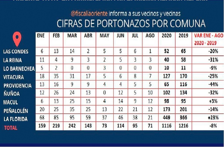 PORTONAZOS EN VITACURA HAN BAJADO 25% EN LOS PRIMEROS OCHO MESES DE ESTE AÑO, EN COMPARACIÓN CON IGUAL PERIODO DE 2019