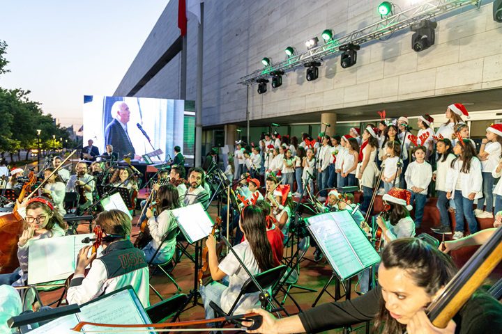 En la ceremonia -encabezada por la alcaldesa Camila Merino- participaron la actriz y cantante Amaya Forch -quien interpretó villancicos-, el coro infantil de Voces de Vitacura, y la Orquesta Juvenil e Infantil de la comuna.