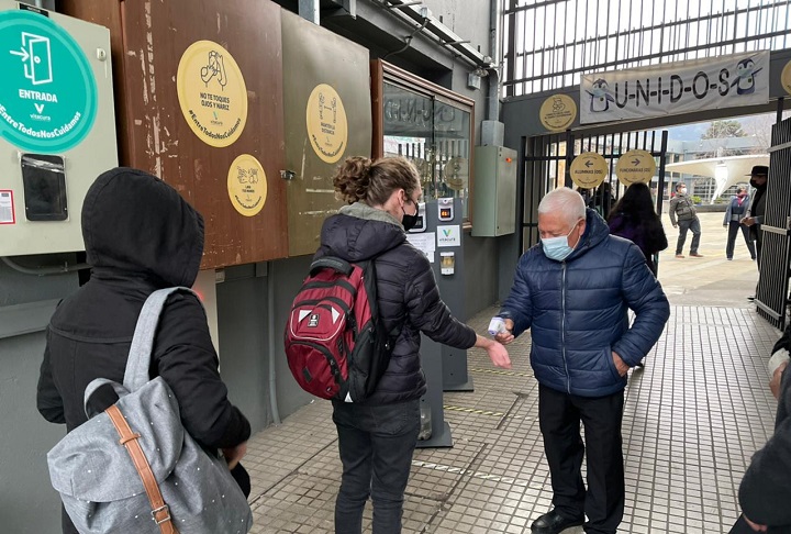 Las salas cuentan con la debida distancia entre los escritorios, toma de temperatura al ingreso del colegio, y lavado constante de manos. Además, las salas permanecen ventiladas durante toda la jornada, y se siguen todas las recomendaciones propuestas por la autoridad sanitaria, para reanudar las actividades escolares presenciales de manera segura.
