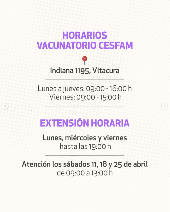 Para lograr este cometido, el Ministerio de Salud, mediante los CESFAM de cada comuna, ofrece en sus vacunatorios las distintas dosis según lo establecido en el programa anual provisto para cada etapa de ciclo vital.