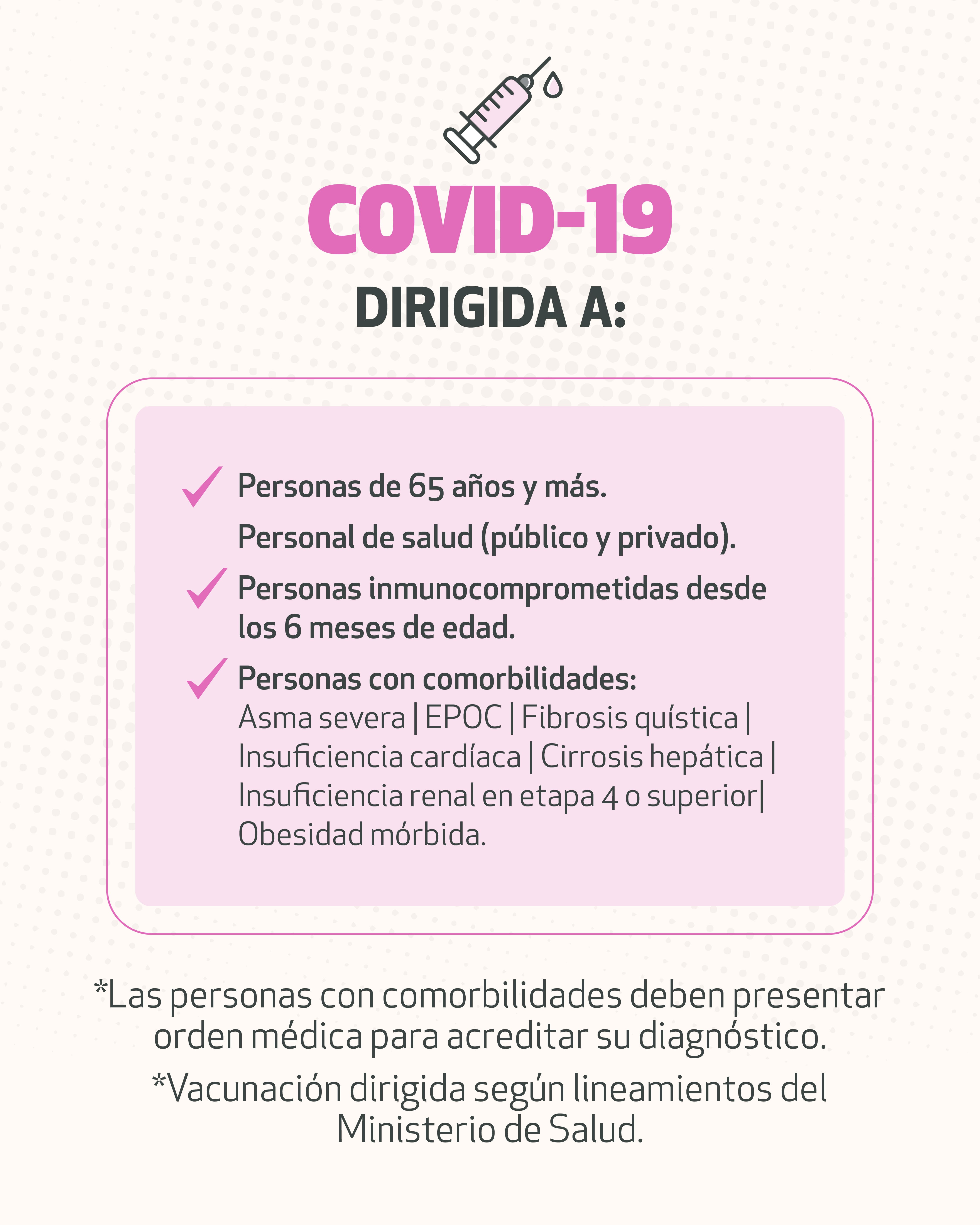 La vacunación de Campaña Influenza y COVID, se enmarcan dentro del Programa Nacional de Inmunizaciones, el cual tiene como principal objetivo prevenir la morbilidad, discapacidad y muertes secundarias a enfermedades inmunoprevenibles, a lo largo de todo el ciclo vital, mediante la cobertura de vacunación a la población.